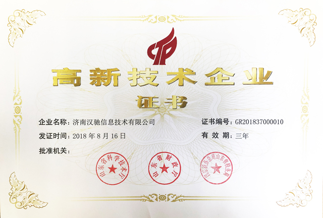 我们企业凭借着专业的研发队伍、雄厚的技术实力、持续的创新能力、科学的企业管理,自主创新,追求卓越的经营理念,顺利的通过了高新技术企业认定,喜获了“高新技术企业证书”,此次证书的取得,不仅是一种荣誉,更是一种责任。该证书的获得为我公司打造创新型企业带来了新的机遇,给了我们公司上下员工很大的鼓舞,这更是对我们企业快速发展、自主研发的肯定,激励了我们企业技术研发的建设,推动了企业经营的进程,我们企业将继续保持高品质、高质量始终如一。